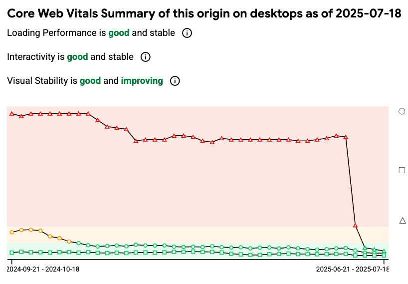 De overstap naar Hyvä vertaalt zich niet enkel in theorie, maar ook in meetbare resultaten. Onze Core Web Vitals tonen duidelijk de sprong in performance.